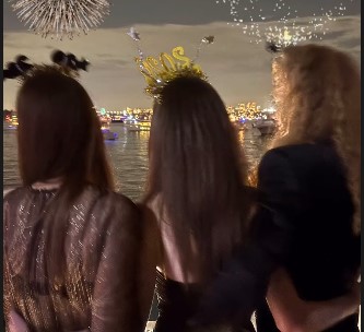 Кидман (58) ја прослави новата година споделувајќи фотографија на која се гледаат таа и нејзините ќерки Сандеј Роуз (17) и Фејт Маргарет (15) со грб кон камерата додека се прегрнуваат една со друга и гледаат кон водата во Сиднеј, Австралија, додека пред нив блескаа монтирани огномети.