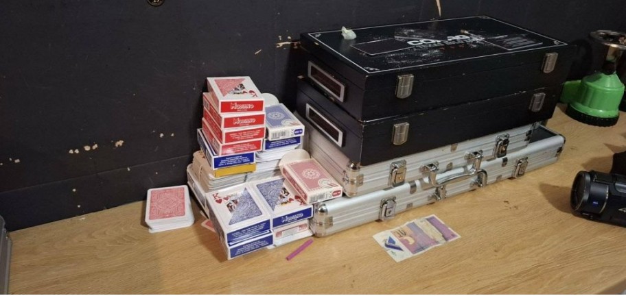 При вчерашна полициска акција во доцните часови, биле извршени претреси на повеќе локации, при што биле пронајдени поголеми парични средства, како и опрема за коцкање, вклучувајќи маси за покер, чипови и карти.