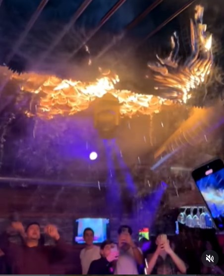 Неколкумина од присутните и покрај тоа што гори плаофнот и понатаму се забавуваат и скокаат во ритамот на музиката, а повеќемина со своите мобилни телефони снимаат што се случува.