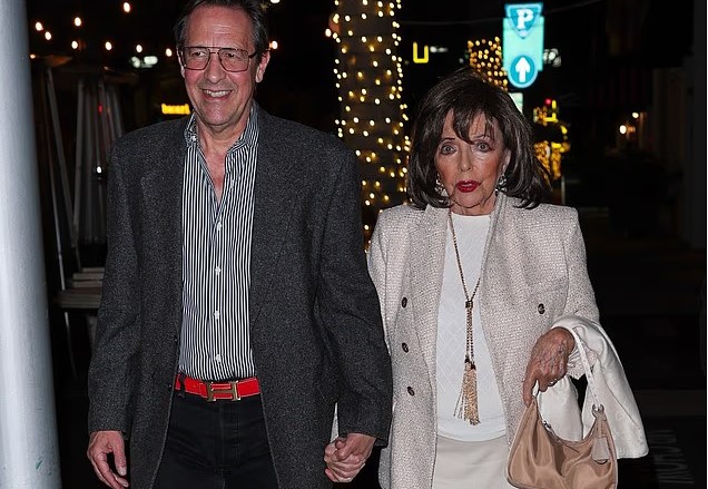 Големата дама, легендарната Џоан Колинс и на 92 години изгледа одлично и со нова фризура на романтичната вечера по повод 24 години „брачно блаженство“ со својот 61-годишен сопруг Перси Гибсон