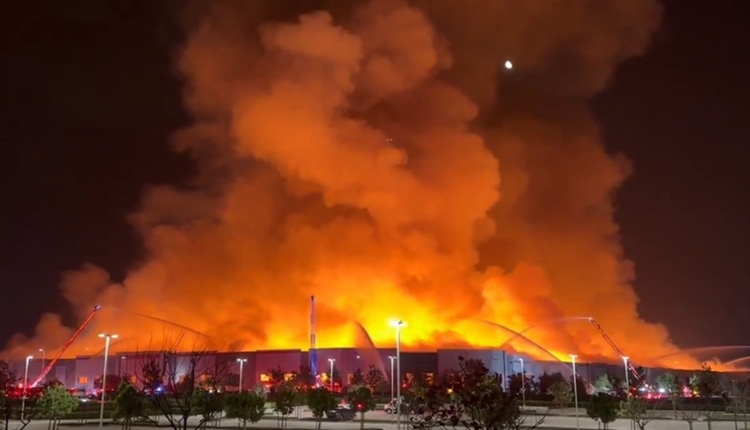 Here is a look at the fire early this morning. While the fire has subsided and now contained, firefighters warn residents to be mindful of the air quality and surrounding street closures. pic.twitter.com/LsD0TsV7Zq