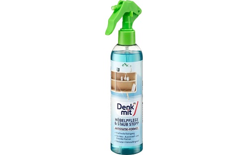 За површини кои сакате да блескаат подолго, тука е Denkmit спрејот за мебел и прашина, 300 мл, по цена од 129 денари. Неговата антистатична формула чисти, негува и го штити дрвото, вештачките материјали и стаклото, додека истовремено го одложува повторното создавање прашина и ги намалува поленските алергени. Без восок, без траги – само чисти и сјајни површини кои траат.