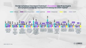 Македонските граѓани онлајн-купувачи најмногу купуваат облека и плаќаат претплати за интернет и мобилни услуги, но мал дел од нив купува храна, електроника и апарати за домаќинство – покажува прегледот на е-трговијата во Западен Балкан за 2025 година, изработен од Асоцијацијата за е-трговија, во кој се споредуваат со податоците од Евростат, за првото тримесечје од 2024 година.