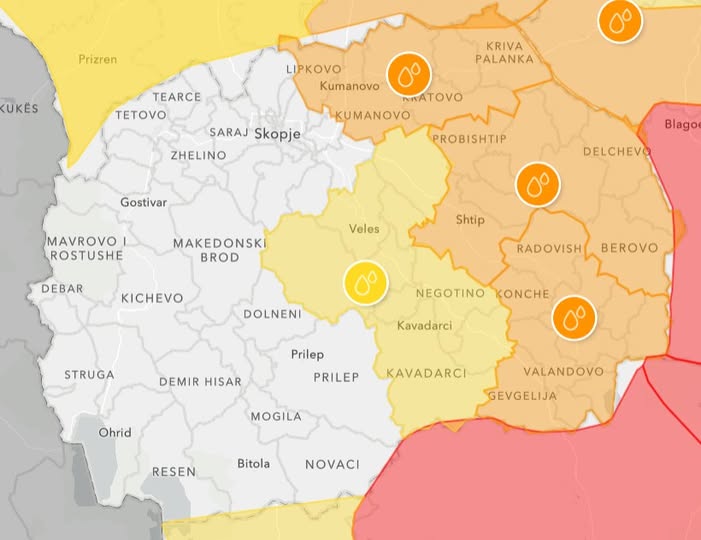 За денеска УХМР издаде портокалов метеоаларм за обилни врнежи од дожд во источните делови од Македонија, каде се очекува да наврне над над 35 литри на квадратеен метар.