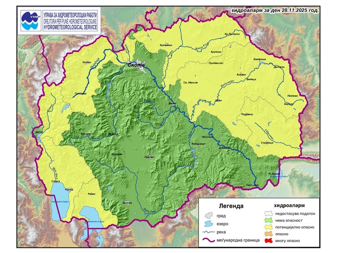 Предупредуваме на претпазливо движење покрај реките и суводолиците во земјата пред сè на оние во југоисточните, источните и североисточните делови на земјата, алармира УХМР.