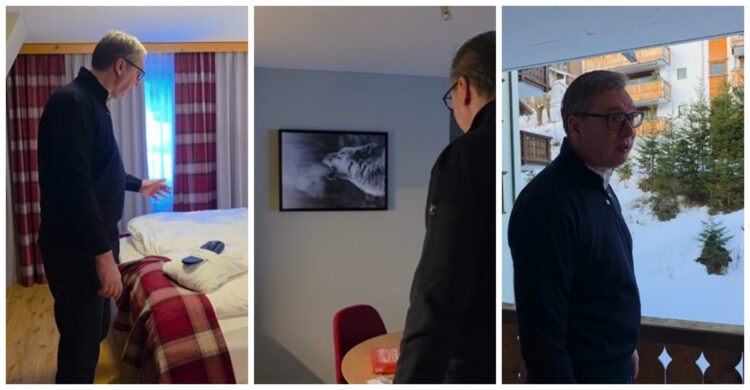 🎥 „ОВДЕ МИ Е КРЕВЕТОТ, А ТУКА СТАВИЛЕ ВОЛК“ Српскиот претседател Вучиќ сподели видео од сместувањето близу Давос