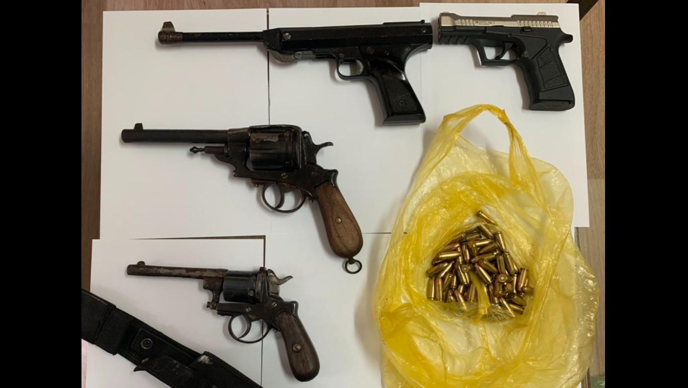 Во неговиот дом биле пронајдени и одземени гасен пиштол, рамка со куршум, воздушен пиштол, два револвера и 58 куршуми со калибар 9 милиметри. Оружјето и муницијата биле поседувани без соодветна документација.
