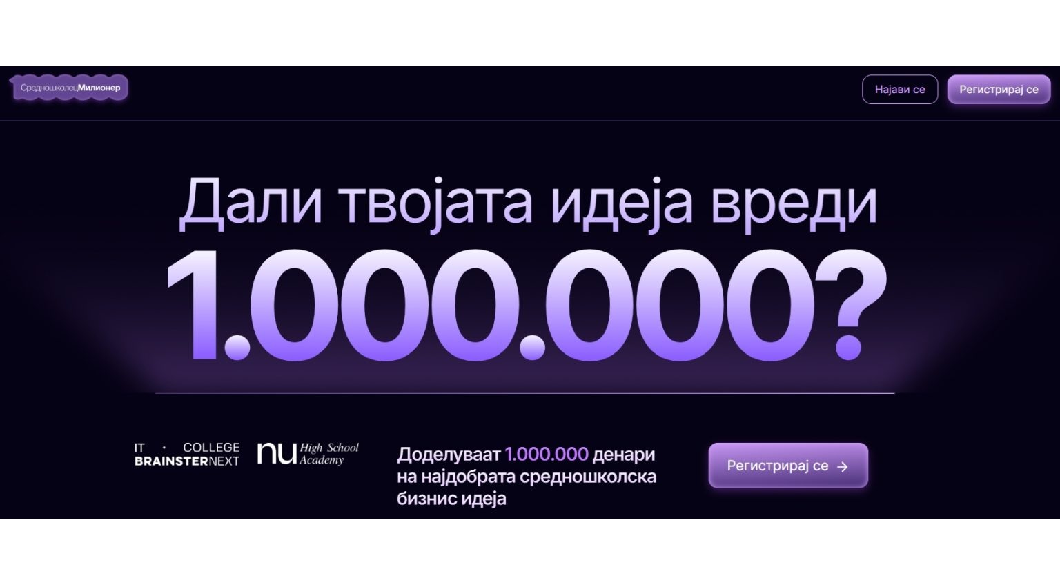 ПОЧНУВА НАТПРЕВАРОТ МИЛИОНЕР СРЕДНОШКОЛЕЦ Наградата за бизнис идеја изнесува 1.000.000 денари