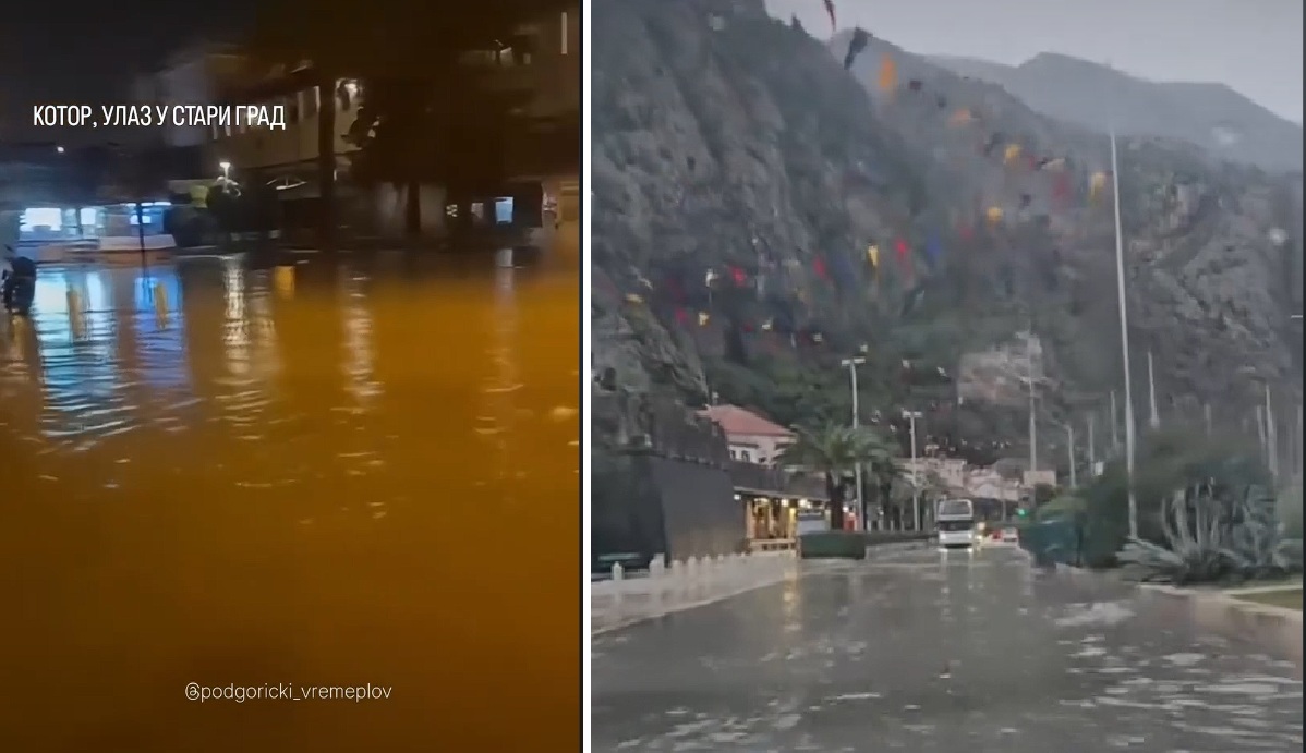Центарот на Котор се претворил во мало езеро, додека улиците во Улцињ личат на канали, покажуваат снимките на црногорските социјални мрежи. Силен циклон од Јадранското Море истури повеќе од 200 литри дожд на црногорското приморје.