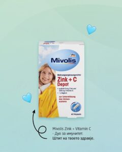 Во периоди кога имунитетот има потреба од дополнителна поддршка, Mivolis капсулите со цинк и витамин Ц, достапни по цена од 159 денари, нудат практично решение со продолжено ослободување. Со една капсула дневно, цинкот и витаминот Ц постепено се апсорбираат во организмот, придонесувајќи за нормална функција на имунолошкиот систем и заштита на клетките од оксидативен стрес.