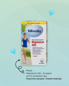 За поддршка на мускулите, нервниот систем и енергетскиот метаболизам, Mivolis магнезиум таблетите нудат сигурна формула по цена од 129 денари. Магнезиумот придонесува за рамнотежа на електролитите и за намалување на заморот и малаксаноста, што го прави особено погоден за лица со активен начин на живот или зголемен физички напор.