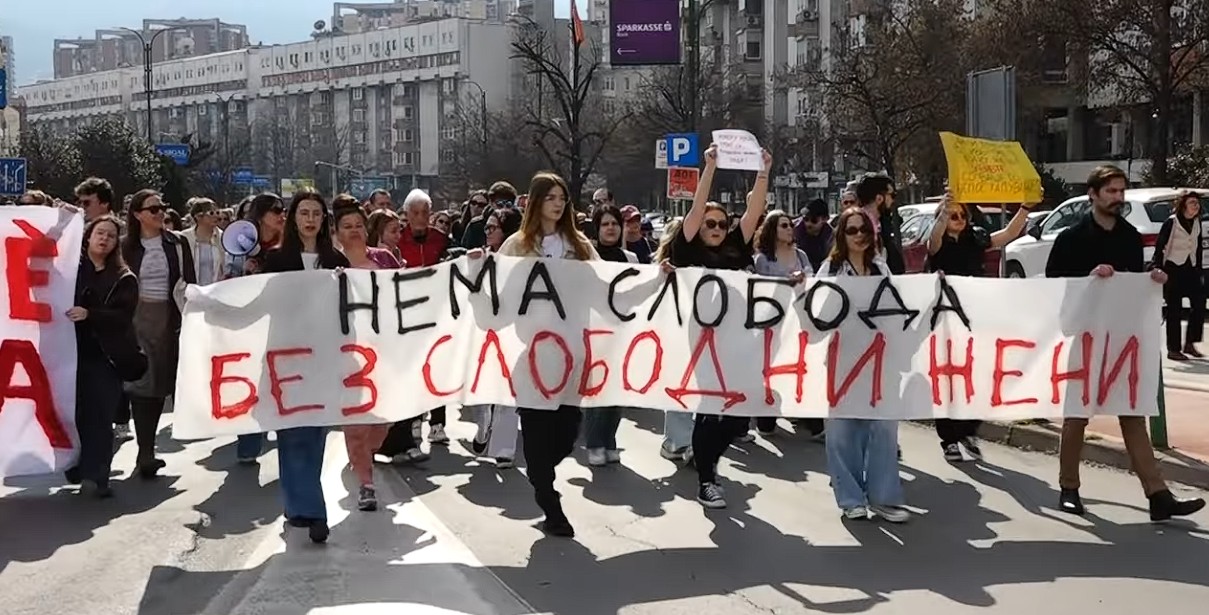 📷 „ПРАВДА ЗА РОСИЦА“, „ПРАВДА ЗА ИВАНА“, „КОЛКУ БУКЕТИ ВИ Е ЖИВОТОТ..“ Осмомартовскиот марш во Скопје со пораки против семејното насилство