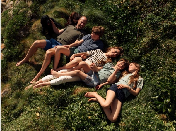 Принцот Вилијам и принцезата од Велс, Кејт Мидлтон, објавија фотографија по повод нивната 15-та годишнина од бракот. На сликата се гледа парот како лежи на трева со своите три деца, принцот Џорџ, принцезата Шарлот и принцот Луис, и нивните кучиња.