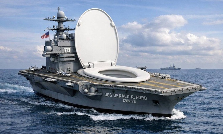 Снимките од најновиот суперносач, УСС Џералд Р. Форд, направени на 24 февруари покажуваат големо излевање на непречистени води од канализацијата во внатрешноста на бродот, по долгогодишни проблеми со затнати тоалети и фекален повратен тек.