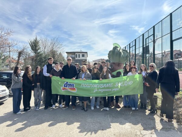 Во рамките на проектот „Зелена иднина: од градинка до училиште“, компанијата dm drogerie markt продолжува со активности за раззеленување и уредување на дворовите на воспитно-образовни установи, кои се реализираат во партнерство со Македонското еколошко друштво (МЕД). На 23 и 27 март беа спроведени нови акции за пошумување во гимназијата „Гоце Делчев“ во Куманово и во градинката „Детска радост“ во Гевгелија, при што беа засадени вкупно 133 садници.