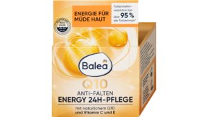 Во понудата е и Balea Q10 ENERGY 24H кремот за нега на лице по цена од 179 денари. Овој крем е погоден и за дневна и за ноќна нега, а особено е наменет за кожа на која ѝ е потребна енергија, хидратација и нега против брчки. Благодарение на коензимот Q10 и витамините Ц и E, кремот помага во хидратација на кожата, придонесува за ублажување на фините линии и брчки и ѝ дава свежина и виталност на уморната кожа. Формулата делува антиоксидативно, ја поддржува природната бариера на кожата и придонесува за поголема еластичност и поубав, поизедначен изглед на тенот. Дополнително, овој крем е погоден и како подлога за шминка.