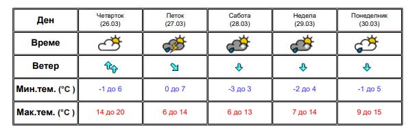 Во четврток преку денот времето ќе биде стабилно, суво и потопло. Ќе дува умерен до засилен, а наместа повремено силен ветер од јужен правец.