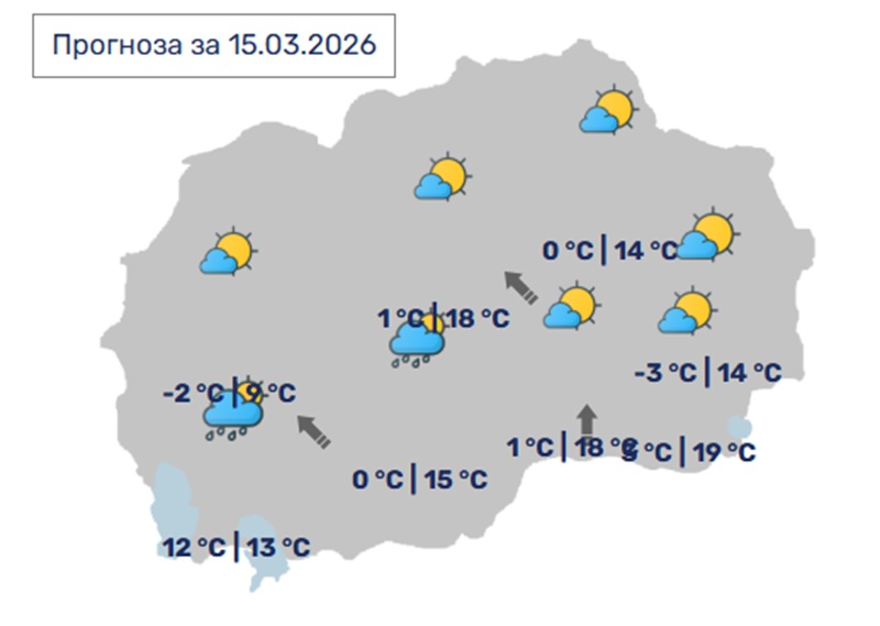 Во Скопје, сончево со мала до умерена облачност. Ќе дува слаб до умерен ветер од југоисточен правец.