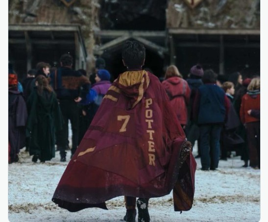 Фотографијата, споделена на официјалниот инстаграм-профил, го прикажува младиот Хари, снимен од грб. Тој носи црвено-златна наметка, боите на домот Грифиндор, со неговото презиме и број на грбот. Пред него, група ученици влегуваат на теренот, украсен со знамиња на Грифиндор и Хафлпаф.