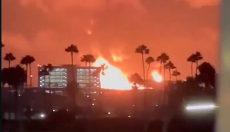 На социјалните мрежи се појавија видеа, а според очевидци, тие го прикажуваат пожарот во рафинеријата за нафта во близина на Лос Анџелес.
