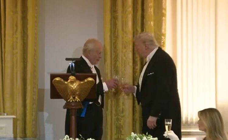 И покрај тензиите меѓу Лондон и Вашингтон околу војната со Иран, атмосферата на вечерата беше срдечна, при што британскиот крал Чарлс и американскиот претседател Доналд Трамп го нагласија „посебниот однос“ меѓу нивните земји.