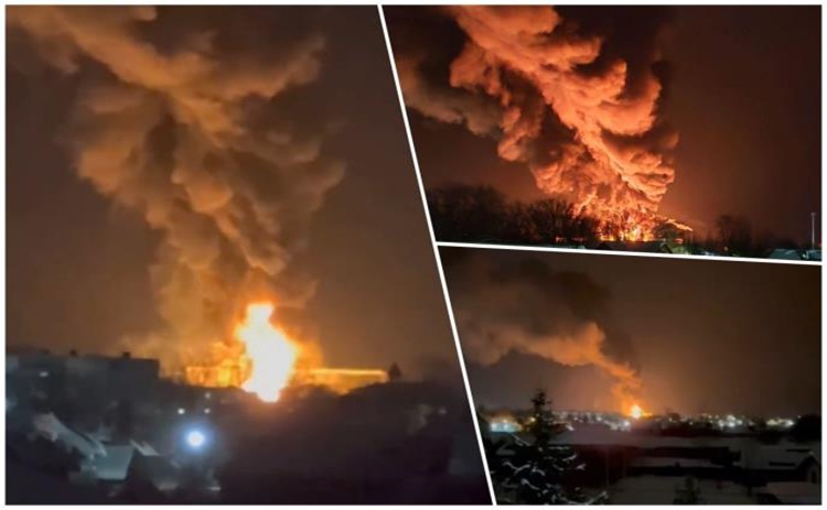 Експлозии и пожари биле пријавени во ноќта на 19 февруари во складиште за нафта во градот Великије Луки, во северозападниот дел на Псковскиот регион, според Телеграм-каналот „Ексиленова+“.