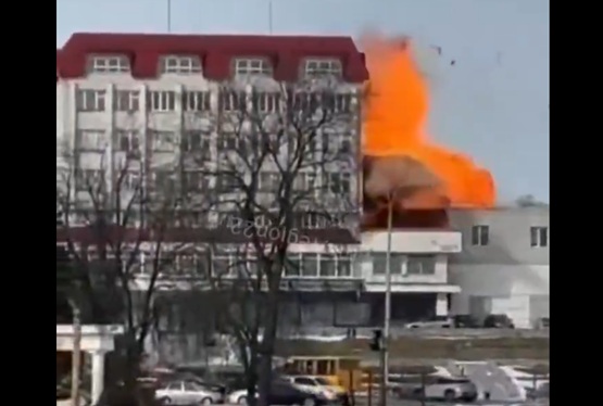 На видеото е прикажан летот на дрон над населбата, кој потоа директното удира во зграда, по што следува експлозија.