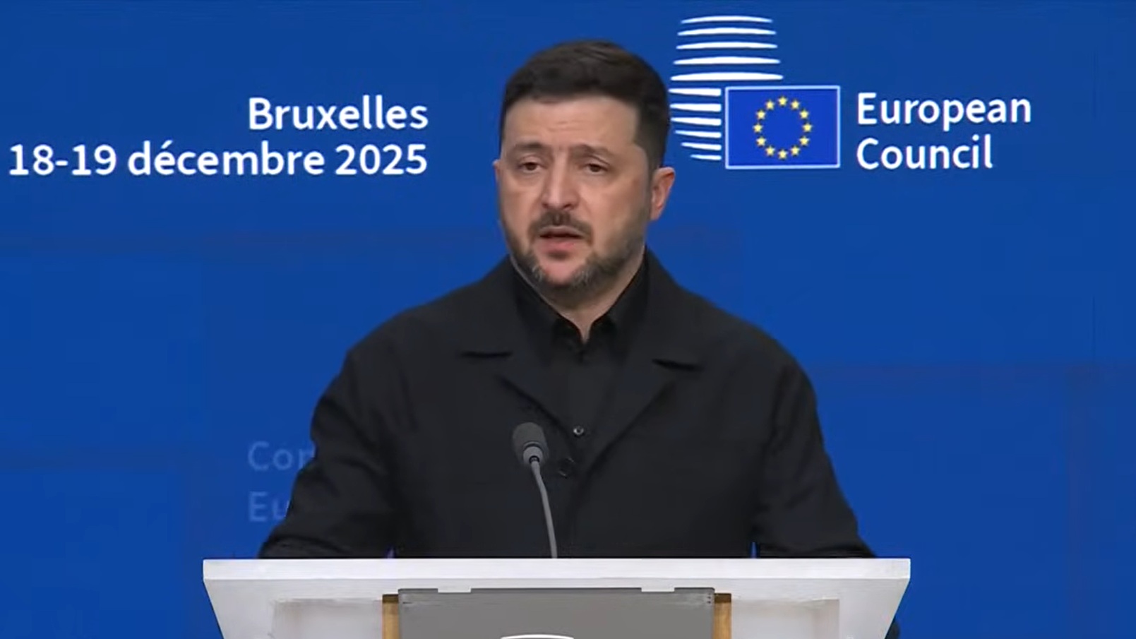 Украинскиот претседател Володомор Зеленски одржа прес-конференцијата во Европскиот совет, по одлуката на Украина да ѝ се одобри европски заем од 90 милијарди евра, на што многу се заблагодари.