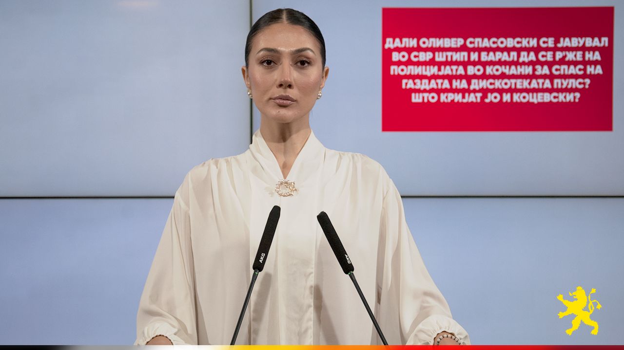Дали поранешниот прв човек на МВР Оливер Спасовски се јавувал во СВР Штип и барал да се р’же на полицијата во Кочани за спас на газдата на дискотеката „Пулс“? Што кријат Јавното обвинителство и јавниот обвинител Коцевски?, прашува Викторија Андовска од ВМРО-ДПМНЕ на партиска-пресконференција.