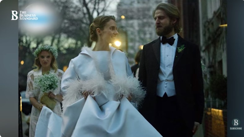 Маја носеше бела венчаница комбинирана со впечатлив, пердувест зимски капут, додека Хатсон се одлучи за класичен смокинг. Мајката на невестата, Турман, блесна во светлосина тоалета со соодветни чевли, а Итан Хоук се појави во целосно црна комбинација.