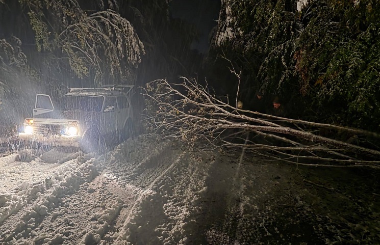 – Во текот на вчерашниот ден и синоќа вработените од ЈУНП „Маврово“ со сопствена механизација, се вклучија во активностите за расчистување на паднатите дрвја кои го отежнуваат движењето на автомобили по регионалниот пат Маврово – Дебар и околу Мавровското Езеро. Причина за паднатите дрвја е снегот кој врнеше во текот на целиот ден – наведуваат од НП Маврово.