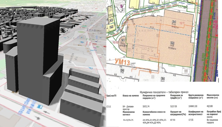 Според објавените анализи на плановите, предвидената површина за градба изнесува околу 105.000 квадратни метри на основа од 5.200 квадратни метри. Согласно правилникот за урбанистичко планирање, за таква деловна намена би биле потребни околу 1.750 паркинг-места, што значи дека би имало потреба од повеќекатна подземна гаража.