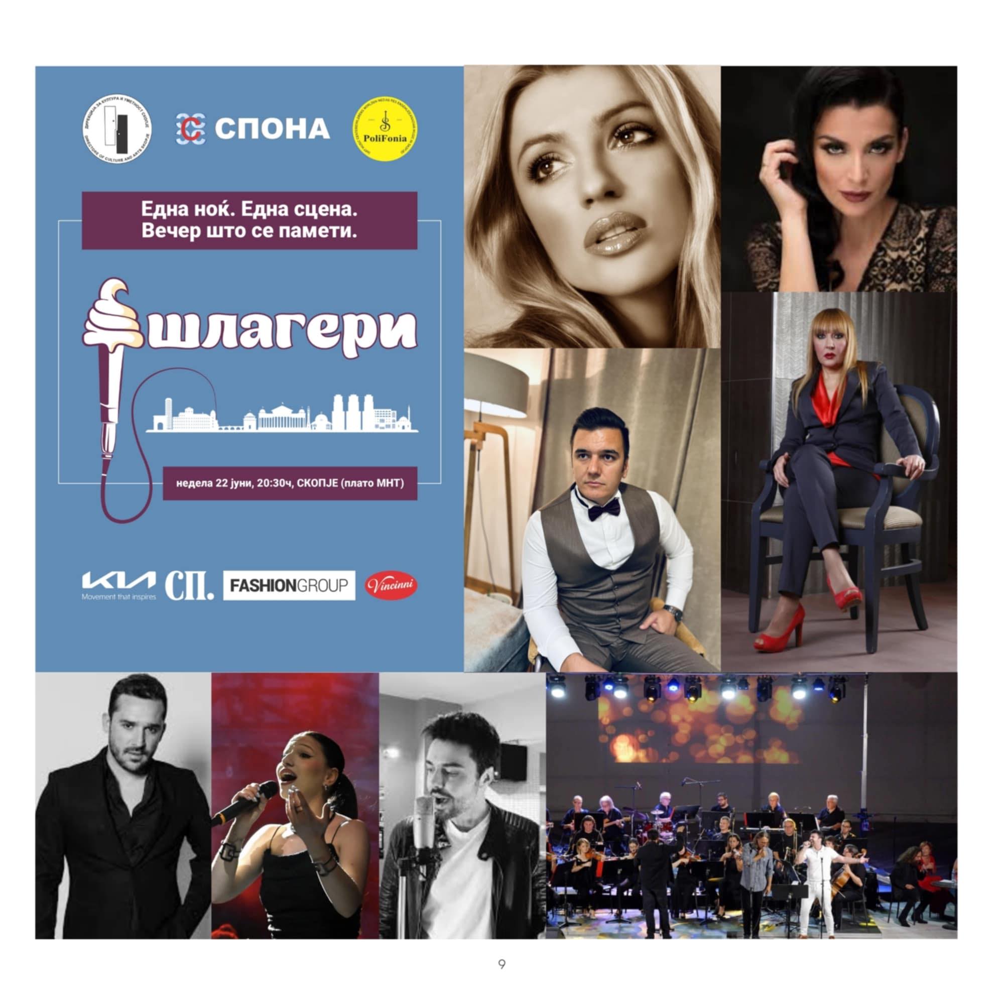 Следниот ден, 22 јуни, недела, фестивалот продолжува со концерт на „Вечер на шлагери” – 20 години СПОНА, со почеток во 20:30 часот на Платото пред Македонскиот народен театар.