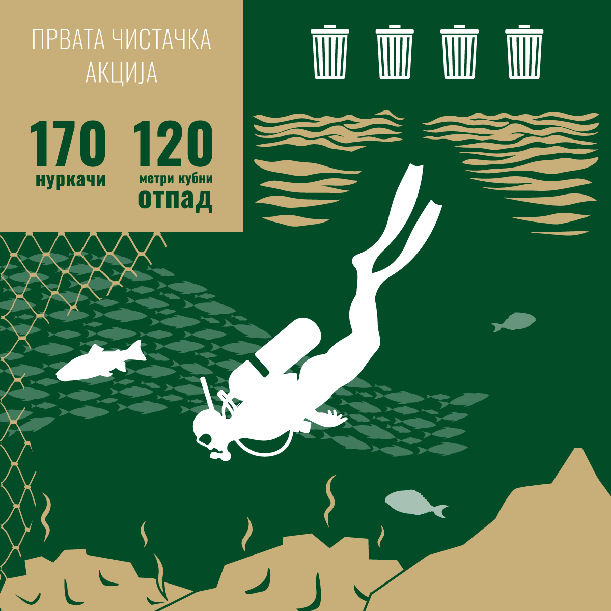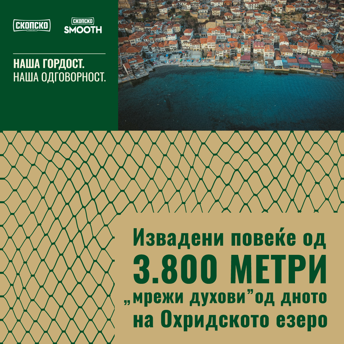 „Во јуни, 170 волонтери и нуркачи собраа 120 кубни метри отпад од брегот и дното на езерото. Во октомври, со поддршка од нуркачкиот клуб „Амфора“, беа отстранети 3.800 метри напуштени рибарски мрежи, кои го загрозуваа езерскиот екосистем. Со чистење на овие т.н, мрежи духови се обновуваат местата каде што порано се мрестеле пастрмките што придонесува кон враќањето на ендемските видови во нивната природна средина“, се вели во написот на Пивара Скопје.