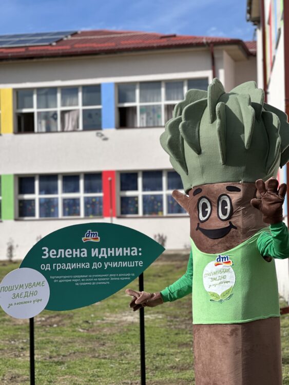 Компанијата dm drogerie markt ја почна реализацијата на проектот „Зелена иднина: од градинка до училиште“ со пошумување и раззеленување на дворовите на 2 основни училишта од земјава. ООУ „Стив Наумов“ од Битола и ООУ „Његош“ во Јурумлери во општина Гази Баба во Скопје добија донација наменета за набавка на садници во вкупен износ од 262.100 денари.