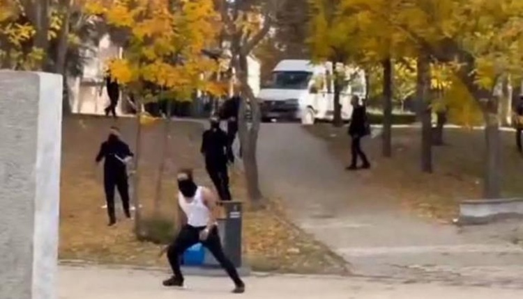 На социјалните мрежи се појави видео снимено од мобилен телефон, а на кое е снимен моментот кога група студенти со скијачки маски нападна други студенти со мачети.