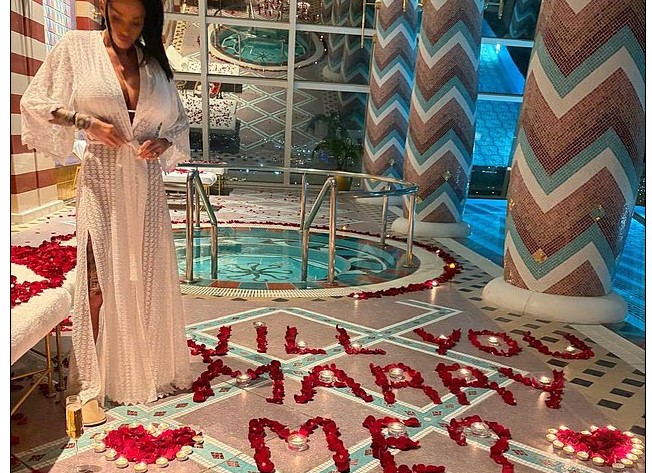 Риалити ѕвездата сподели мноштво фотографии додека позира покрај црвени рози со кои пишуваше „ќе се омажиш ли за мене?“.