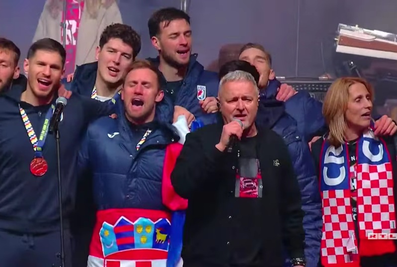 На плоштадот Бан Јелачиќ во Загреб синоќа навивачи ја поздравија хрватската ракометна репрезентација, која во неделата го освои бронзениот медал на ЕП во Данска, а контроверзниот пејач Марко Перковиќ Томпсон настапи на приемот организиран од Владата на Хрватска, и покрај забраната од градските власти. Меѓу хрватските знамињата што се вееја, можеше да се види и знаме на некогашната паравојска ХОС со забранетиот усташки поздрав „За дом спремни“.