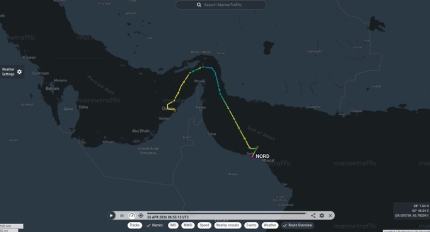 Според податоците од платформите за следење бродови, јахтата „Nord“ долга 142 метри испловила од Дубаи. Пловидбата продолжила низ Ормускиот Теснец кон Оман.