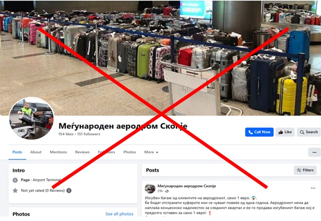 ТАВ Македонија, аеродромскиот оператор на двата македонски аеродрома, Меѓународниот аеродром Скопје и Aеродромот Св. „Апостол Павле“ Охрид, ја известува и ја предупредува јавноста за лажни страници и профили на социјалните мрежи преку кои наводно се продава изгубен багаж на аеродромот.