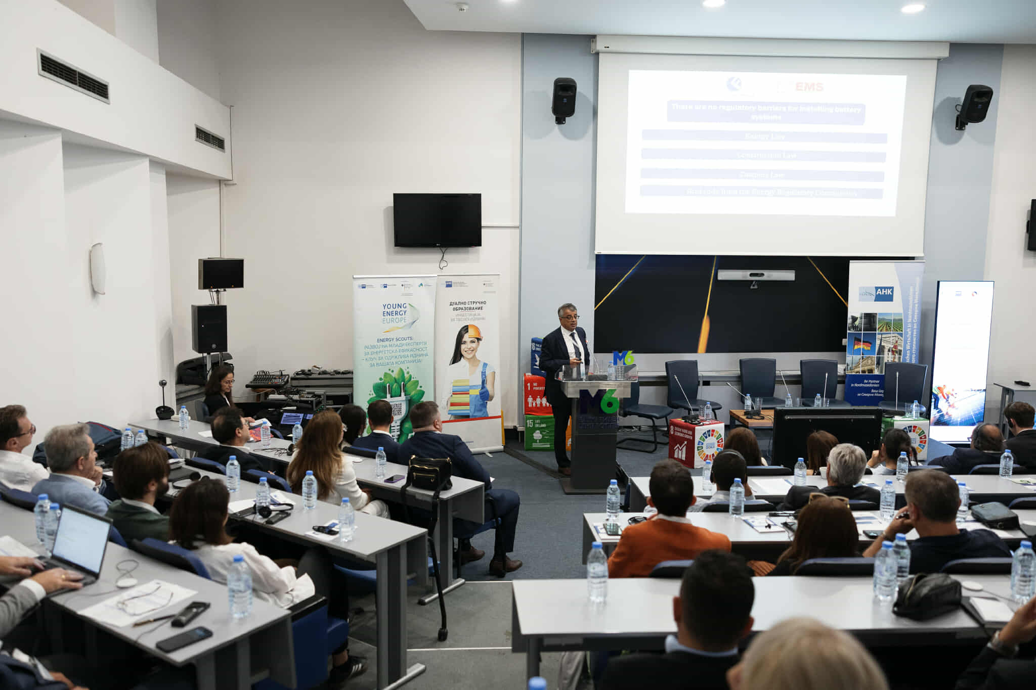 Законските одредби се донесени и останува да се поставуваат батерии со добра проценка и пресметка за да се постигне најдобра исплатливост, порача Тодор Анѓушев, директор на ЕМС во групацијата ФЕРОИНВЕСТ, на конференцијата на Делегацијата на германското стопанство во Македонија, на која германски фирми ги претставуваа своите практики, производи и искуства во енергетиката.