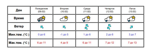 Најстудено ќе биде во Маврово, со утринска температура од 0 степени. Најтопло ќе биде во Гевгелија, со дневна температура до 14 степени.