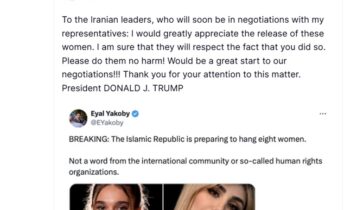 ТРАМП БАРА ИРАН ДА ГИ ОСЛОБОДИ 8-ТЕ ЖЕНИ КОИ НАВОДНО ТРЕБА ДА БИДАТ ОБЕСЕНИ Ве молам, не им наштетувајте