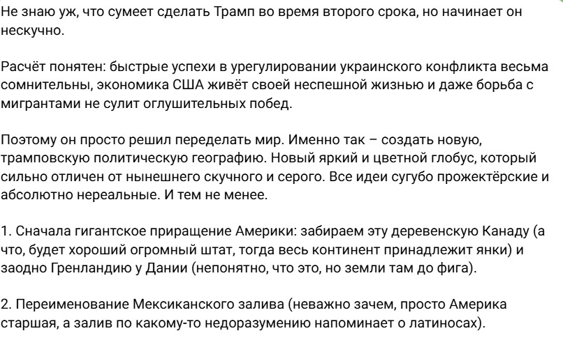 Тој иронично додаде дека Трамп може да смета дека целиот континент им припаѓа на САД со преземање на Канада, додека Гренланд го гледа само како „огромно парче земја“ што би ѝ припаднало на Америка.