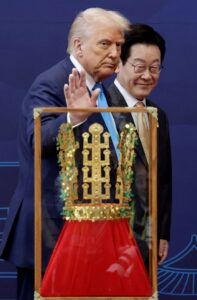 На претседателот на САД, Доналд Трамп, денеска од јужнокорејскиот претседател Ли Џе Мјунг му беше врачен Големиот орден на Мугунгва и Златната круна на кралството Сила во Националниот музеј во Гјонгџу.