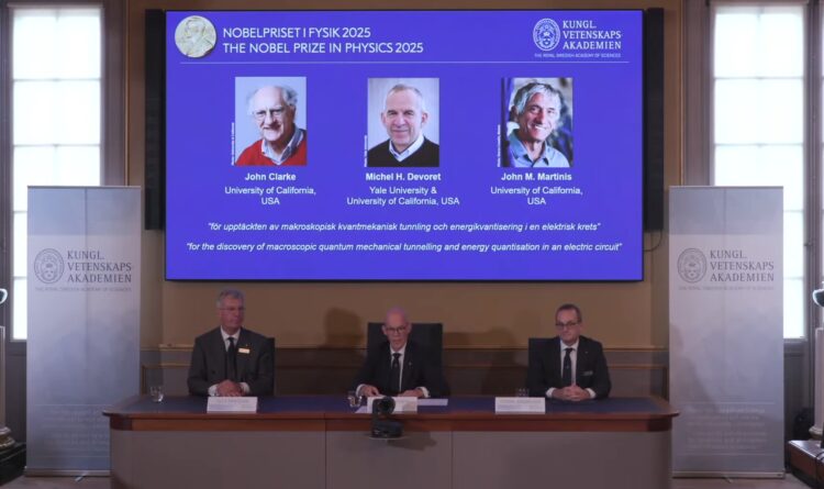 Нобеловата награда за физика оваа година ја добија Џон Кларк, Мишел Х. Деворе и Џон М. Мартинис „за откривање на макроскопско квантно механичко тунелирање и квантизација на енергијата во електричното коло“, соопшти денеска Кралската шведска академија на науките.