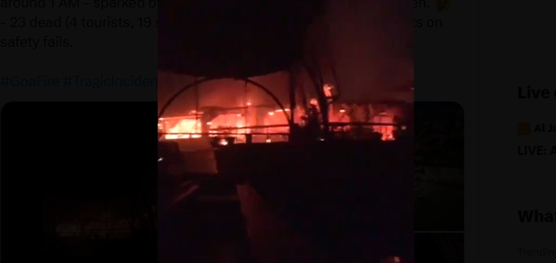 Најмалку 25 лица, меѓу кои и четворица странски туристи, загинаа во катастрофален пожар што ноќеска зафати ноќен клуб во Гоа, популарен туристички регион на западниот брег на Индија. Уште седум лица се повредени, од кои едно е во критична состојба.