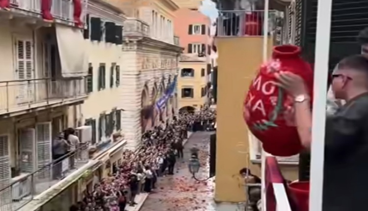 📽️ ВАКА СЕ СЛАВИ ВЕЛИГДЕН НА ОСТРОВОТ КРФ Спектакл со ќупови што се кршат на улица