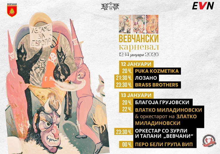 Вевчанскиот карневал 2026 ќе се одржи на големиот празник Свети Василиј Велики, или како што вевчанци го нарекуваат Свети Васиља, во периодот од 12 до 14 јануари, кога Вевчани традиционално станува центар на сатирата, маските и слободниот дух.
