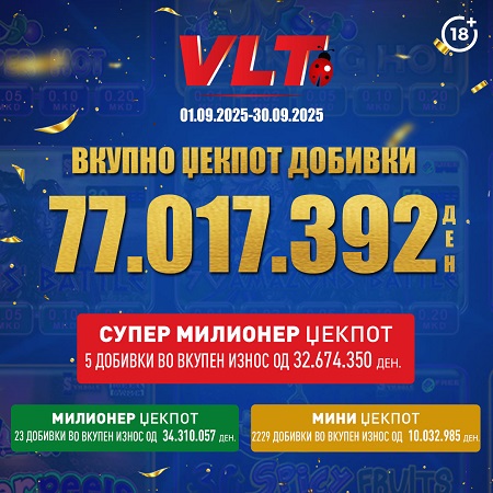 – Во изминатите 11 години, на среќните играчи низ Македонија им се исплатени преку три милијарди денари – доказ за транспарентност, стабилност и лидерска позиција во областа на електронските игри на среќа. Септември докажа дека среќата секогаш е тука, на ВЛТ терминалите на Видеолотарија Касинос Австрија – порачуваат од Видеолотарија.